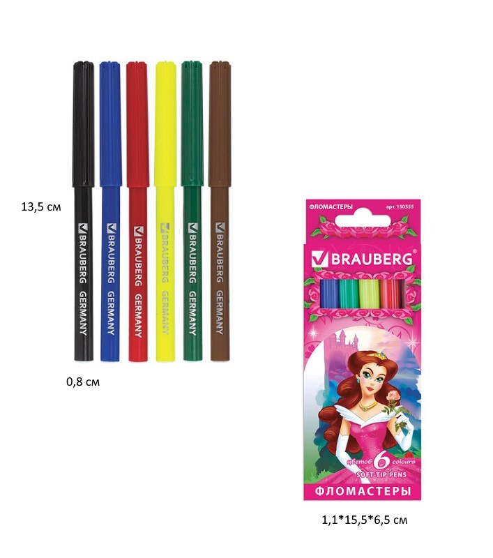 кс_Фломастеры арт. 150555 BRAUBERG "Rose Angel", 6 цветов вентилируемый колпачок, картонная упаковкаКоличество цветов: 6