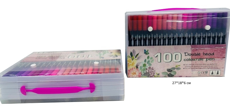 Фломастеры арт. 214-15 Двусторонние Набор 100 цветов в пластик. кор.•