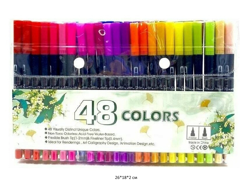 кц_Фломастеры акварельные арт. YL221813-24 Набор 24 цвета двусторонние в пласт.кор.