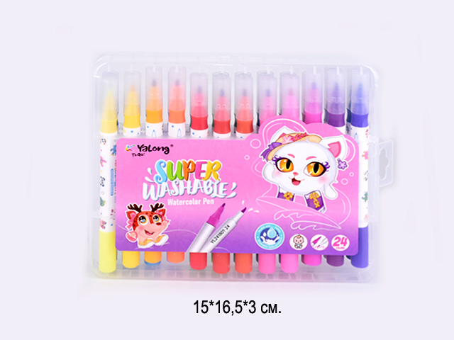 кц_Фломастеры акварельные арт. YL241801-24 Набор 24 цвета двусторонние в пласт.кор.