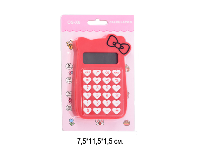кц_Калькулятор настольный арт. OS-X6 8 разрядов, питание от батареек "Бантик с серцами" на листе