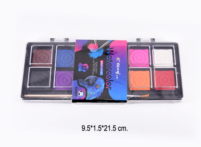 кц_Краски акварельные арт. YL222210-12 Набор 12 цветов с кистью в пластиковой подложкекц_Краски акварельные арт. YL222210-12 Набор 12 цветов с кистью в пластиковой подложке