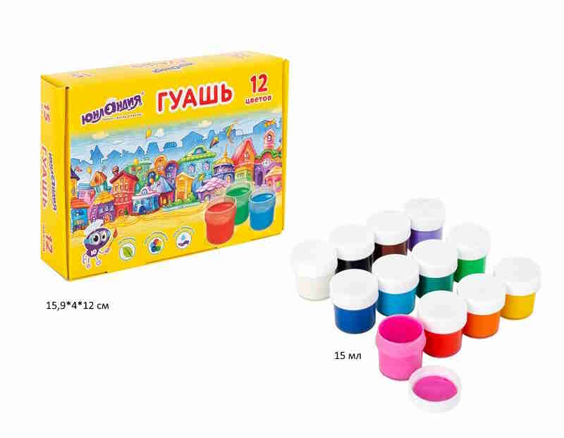 кс_Гуашь арт. 192561 ЮНЛАНДИЯ "ДОМИКИ" 12 цветов по 15 млкс_Гуашь арт. 192561 ЮНЛАНДИЯ "ДОМИКИ" 12 цветов по 15 мл