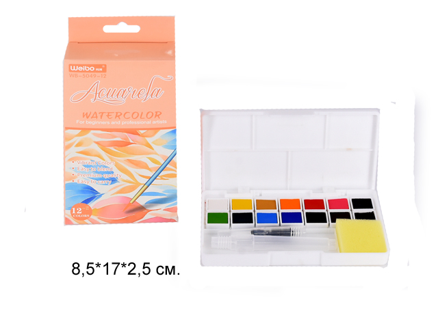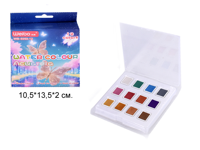 кц_Краски акварельные арт. WB-5050-12 Набор 12 цветов в синей кор.кц_Краски акварельные арт. WB-5050-12 Набор 12 цветов в синей кор.