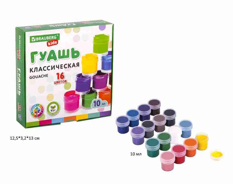 кс_Гуашь арт. 192375 BRAUBERG KIDS "NEW" 16 цветов по 10 млкс_Гуашь арт. 192375 BRAUBERG KIDS "NEW" 16 цветов по 10 мл