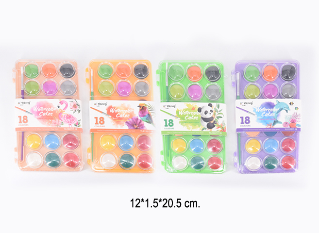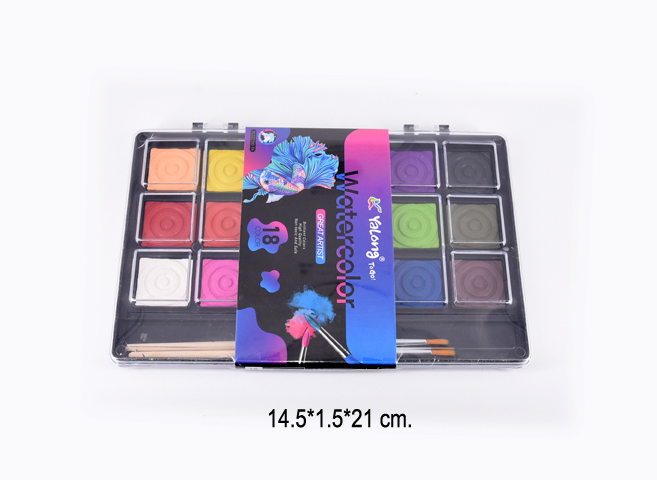 кц_Краски акварельные арт. YL222210-18 Набор 18 цветов с 2 кистями в пластиковой подложкекц_Краски акварельные арт. YL222210-18 Набор 18 цветов с 2 кистями в пластиковой подложке