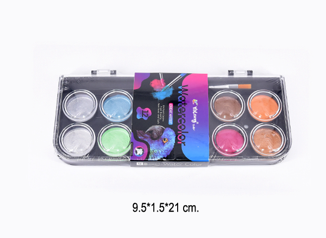 кц_Краски акварельные арт. YL222212-12 Набор 12 цветов металлик с кистью в пластиковой подложкекц_Краски акварельные арт. YL222212-12 Набор 12 цветов металлик с кистью в пластиковой подложке