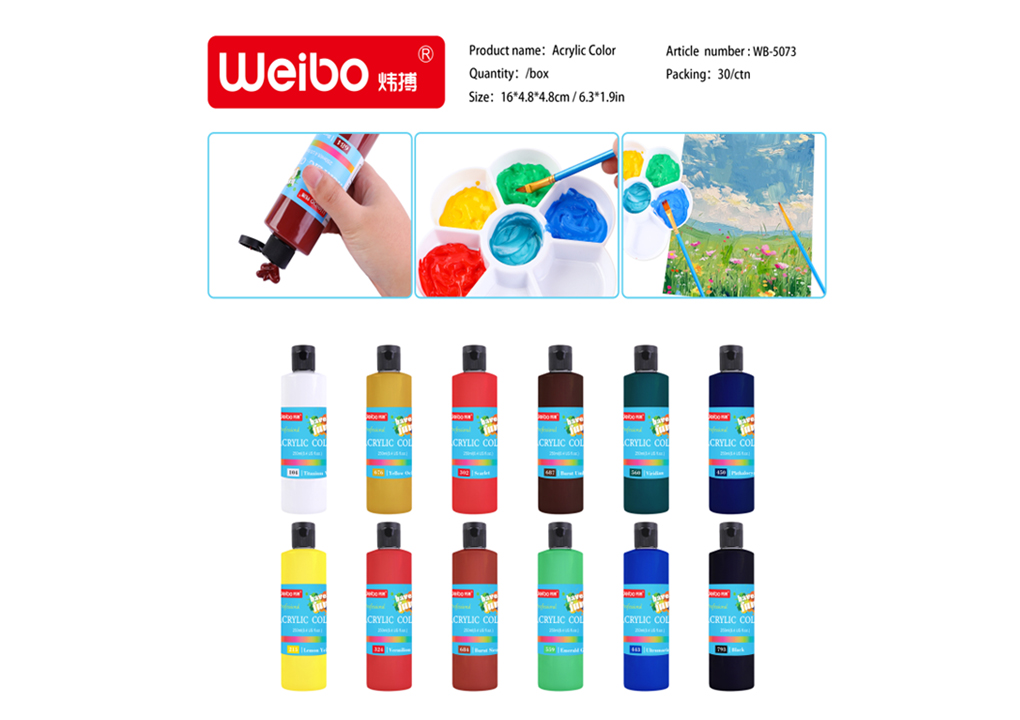 кц_Краска акриловая арт. WB-5073 250 мл в бутылке цвета микскц_Краска акриловая арт. WB-5073 250 мл в бутылке цвета микс