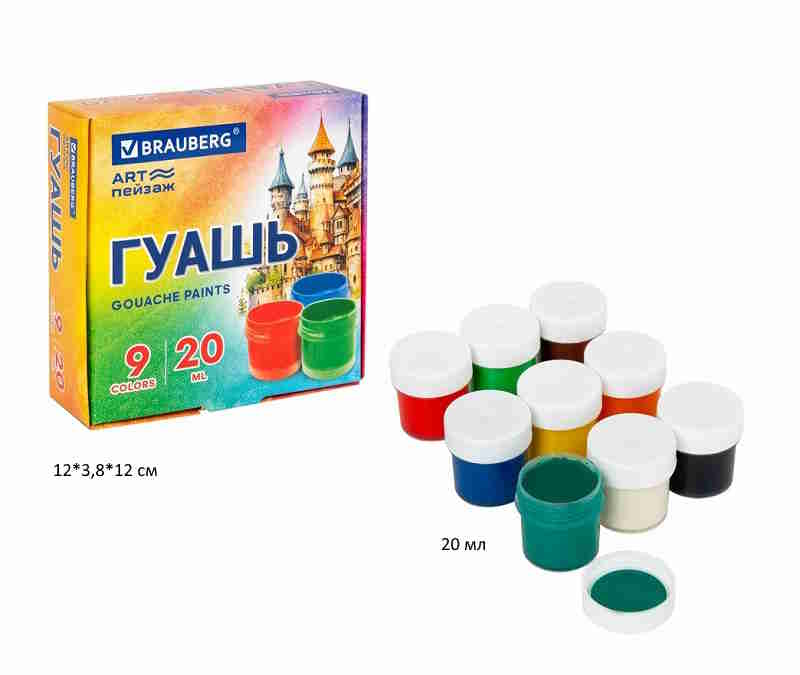 кс_Гуашь арт. 192556 BRAUBERG "ART ПЕЙЗАЖ" 9 цветов по 20 мл