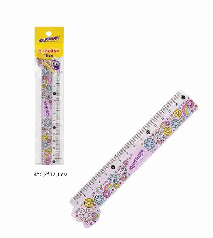 кс_Линейка арт. 210728 Пастик 15см ЮНЛАНДИЯ "СЛАДКИЕ ИСТОРИИ"фигурная,цветн.печать с волнистым краем