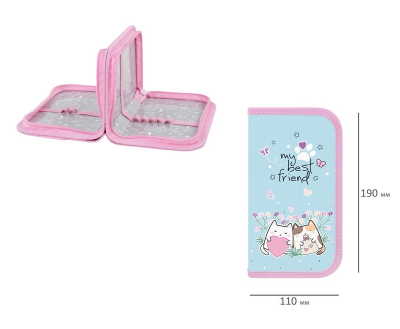 кс_Пенал арт. 272247 ПИФАГОР 2 отделения ламинированный картон 19х11 см "Cat friends"