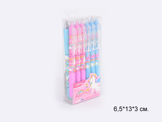 кц_Ручка стираемая гелевая арт. YL232752 Набор 12 шт. синяя 0,5 мм Единорог в прозр.кор.