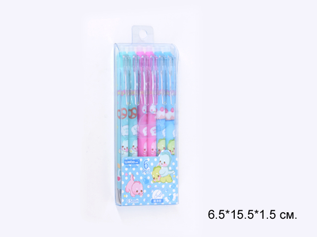 кц_Ручка шариковая арт. WB-5659 Набор 6 шт. Автомат синяя 0,5 мм Динозаврики в прозр.кор.