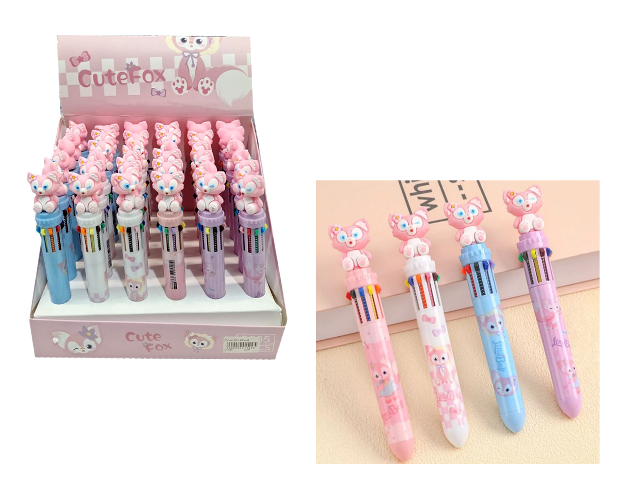 Ручка шарковая арт. 9005-709 Многоцветная (10 цветов) Розовая лиса 1 шт. (36 шт.) шоубокс