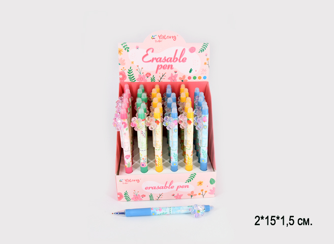 кц_Ручка стираемая гелевая арт. YL242623 Автомат "Цветок" 1 шт. цвета микс (24 шт.) шоубокс