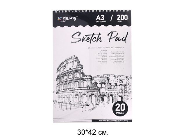 кц_Скетчбук арт. YL-XQ-342-A3 Альбом 20 листов А3 вертикальный на пружине 200 г/м²