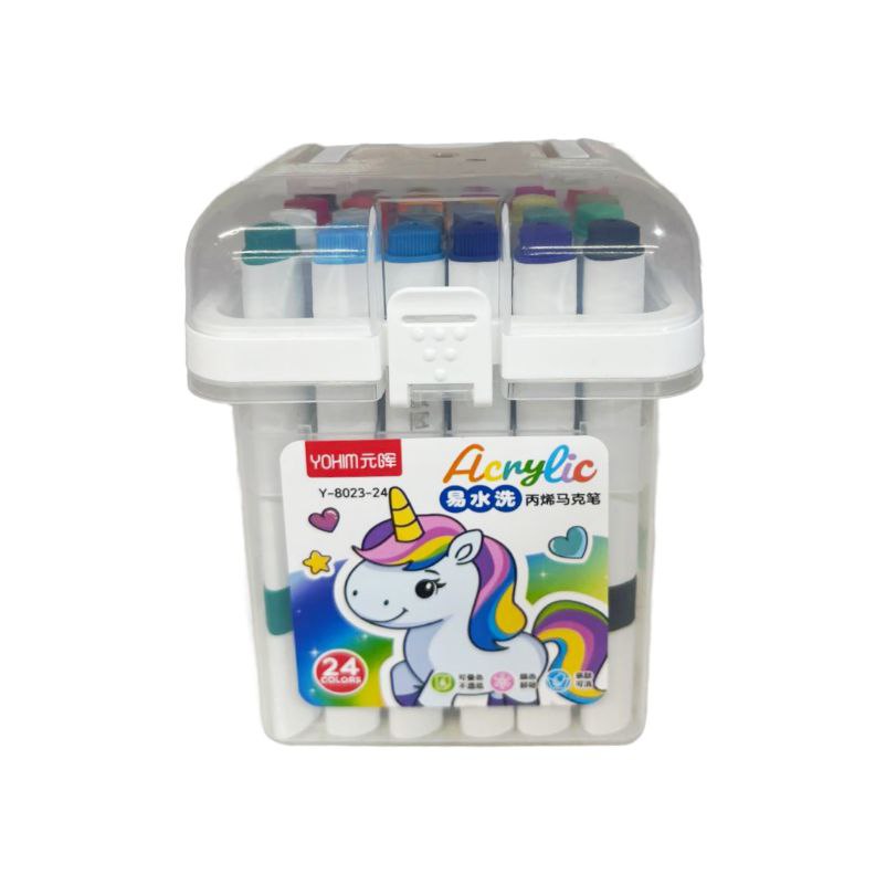 Маркеры арт. Y-8023-24 Акриловые 24 шт. "Единорог" в прозрачном кейсе|