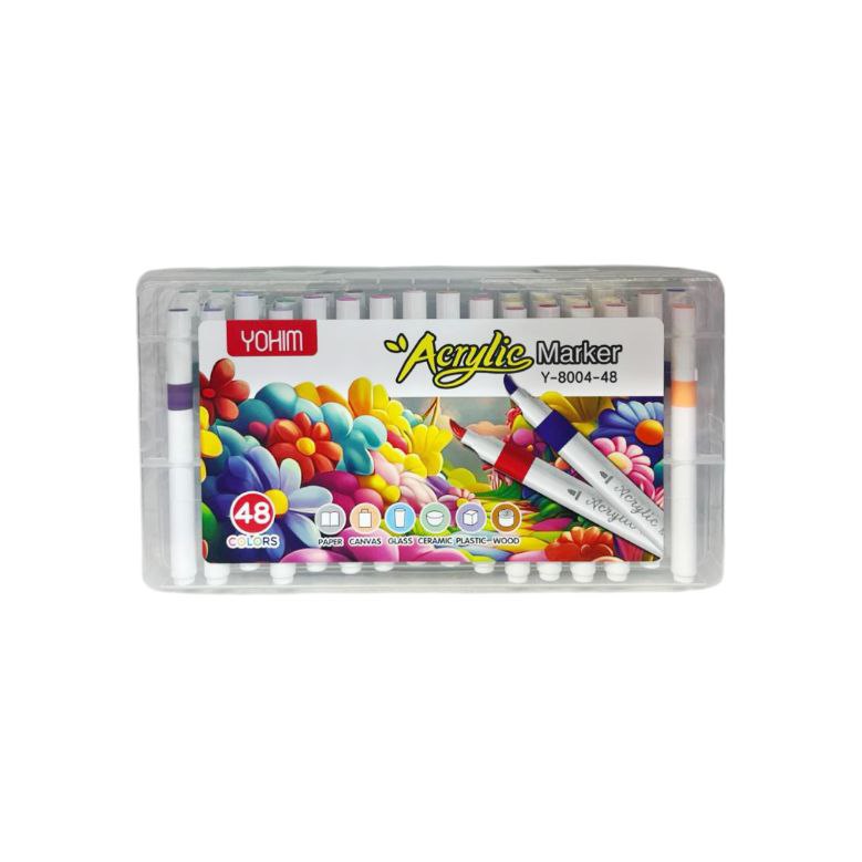 Маркеры арт. Y-8004-48 Акриловые 48 шт. "Цветы" в прозрачном кейсе|