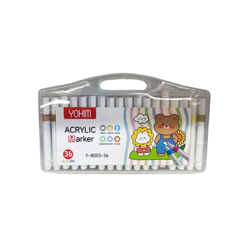 Маркеры арт. Y-8003-36 Акриловые 36 шт. "Зверушки" в прозрачном кейсе|
