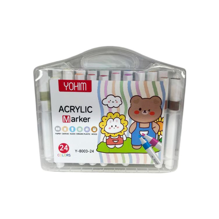 Маркеры арт. Y-8003-24 Акриловые 24 шт. "Зверушки" в прозрачном кейсе|