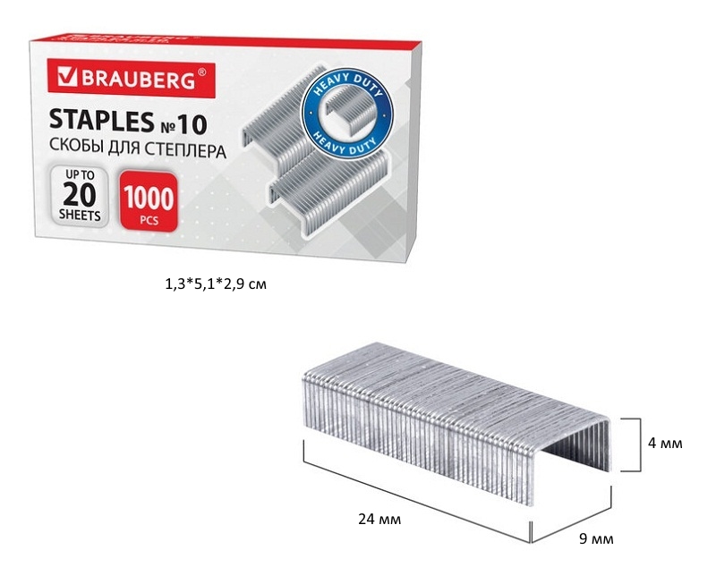 Производство: Китай18 руб. - кс_Скобы для степлера №10 арт. 220949 1000 штук, BRAUBERG, до 20 листов×кс_Скобы для степлера №10 арт. 220949 1000 штук, BRAUBERG, до 20 листовСтальные скобы для степлера размером № 10. Прочные скобы имеют цинковое покрытие, которое защищает их от коррозии. Максимальное количество сшиваемых листов - 20 штук. Продаются в картонной упаковке по 1000 штук в каждой, что является оптимальным вариантом для долговременного использования.