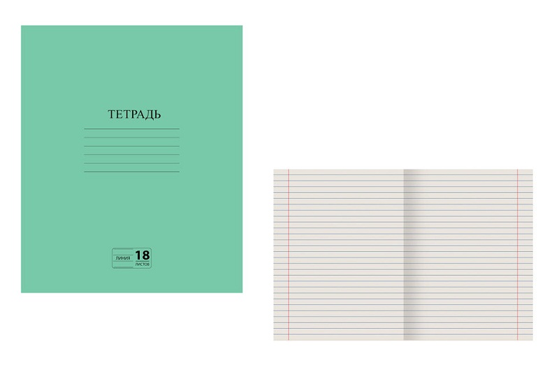 кс_Тетрадь арт. 104987 ЗЕЛЁНАЯ обложка 18 л., линия с полями, офсет №2 ЭКОНОМ "ПИФАГОР"
