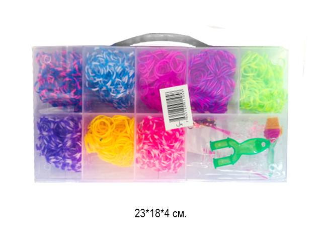 Набор для плетения арт. 18911-5/11058 Резиночки 8 ячеек с крючками в прямоуг. кор.•/100 шт./