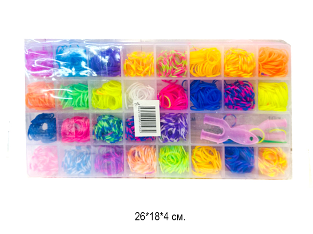 Набор для плетения арт. 18911-3/11034 Резиночки 29 ячеек с крючками в прямоуг. кор.•/136 шт./