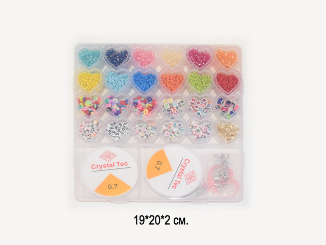 Набор для плетения арт. 285-3-805/28530 Бусины 24 ячейки-сердечка, 2 лески и аксессуары в кор.