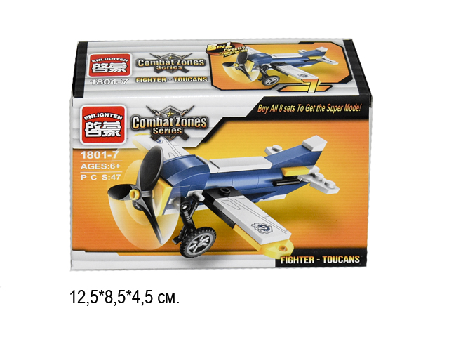 199.15 руб. - Конструктор арт. 1418-7" Самолет (8 шт.)/шоубокс 21*9*4,5/144шт.//бл./×Конструктор арт. 1418-7" Самолет (8 шт.)/шоубокс 21*9*4,5/144шт.//бл./Конструктор состоит из 78 деталей, из которых можно собрать военный истребитель. Серия состоит из 8 разных наборов, которые можно объединить между собой и собрать огромный боевой танкер.