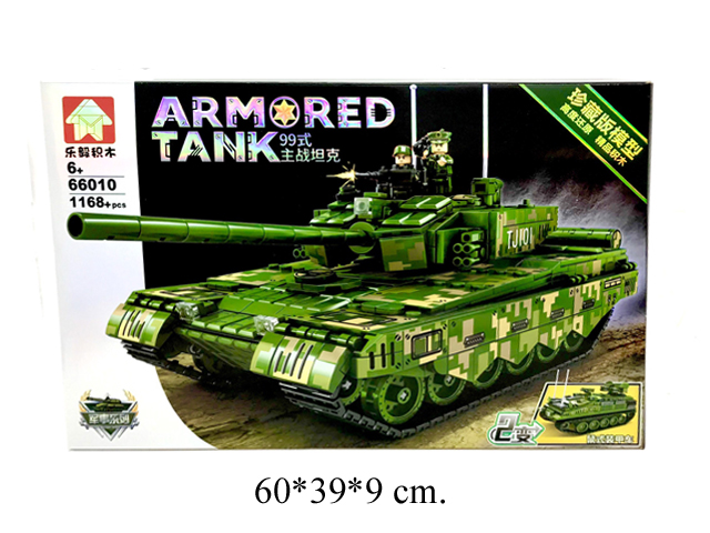 - Конструктор арт. 66010 Танк 1168 дет. в кор._/12 шт./×Конструктор арт. 66010 Танк 1168 дет. в кор._/12 шт./"Конструктор 66010 состоит из 1168 деталей, из которых можно собрать военный танк с открывающимся люком и подвижной пушечной башней. Набор так же включает в себя различные аксессуары, оружие и минифигурки солдатов. Яркие детали отлично развивают мелкую моторику и воображение!