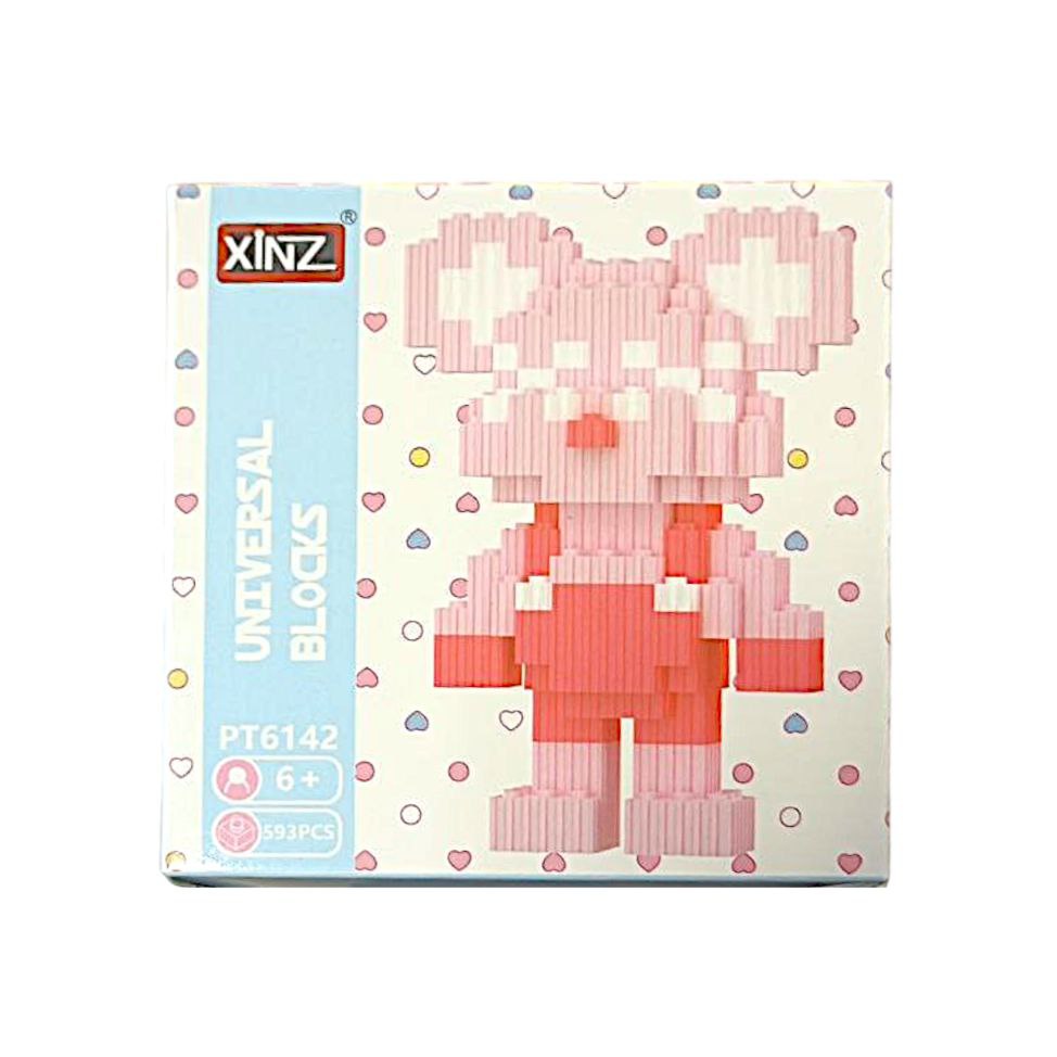 Конструктор арт. PT6142-805 Микро Медведь розовый в красном комбинизоне 593 дет. в кор.