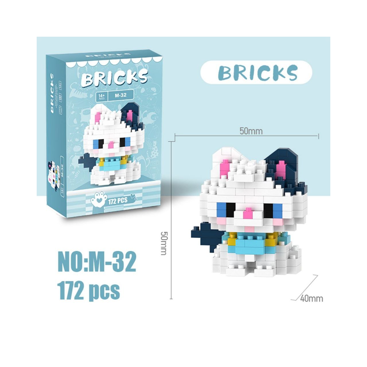 Конструктор арт. M-23-805 Микро Кошка белая с красным бантом 170 дет. в кор.