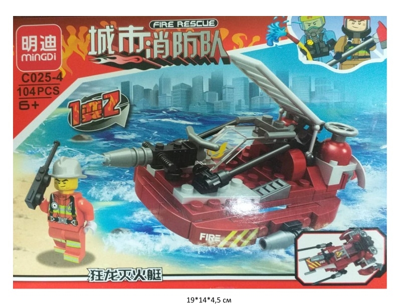 Конструктор арт. C025-4 Пожарная техника 104 дет. 8 в 1 в кор.~