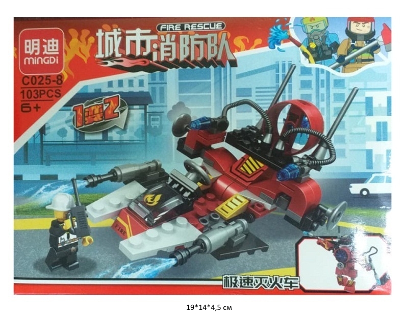 Конструктор арт. C025-8 Пожарная техника 103 дет. 8 в 1 в кор.~