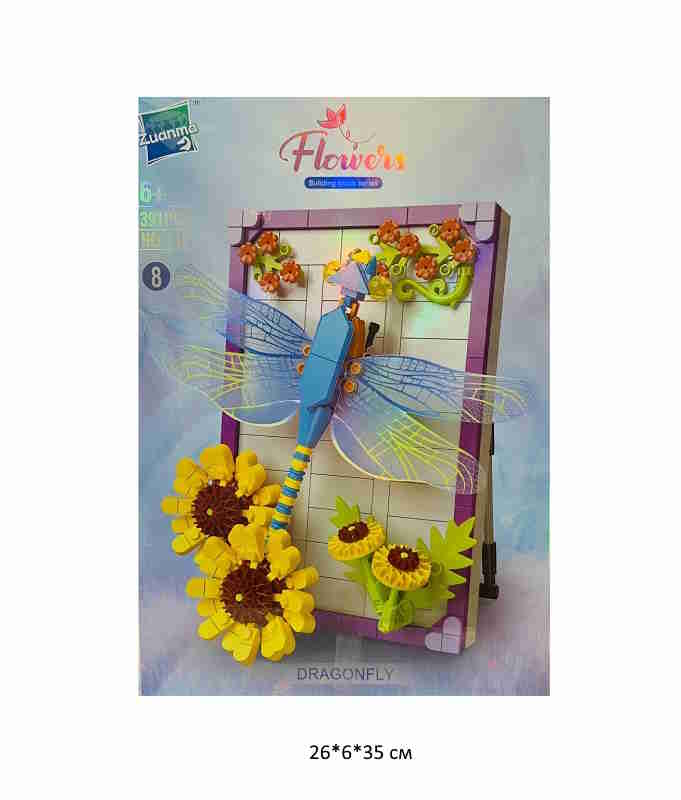 Конструктор арт. 112-8 Картина "Стрекоза в цветах" 391 дет. в кор.~