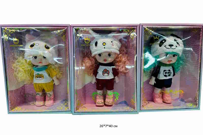 Кукла арт. 36601 Кудряшка в шапке-зверюшке в ассортименте в кор.•