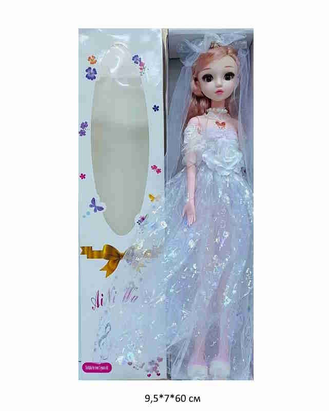 Кукла арт. 2009-4 В белом платье шарнирная муз. в кор.~