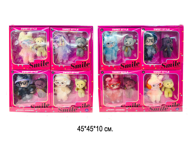 Кукла арт. 40562-1 В костюме зверюшки с питомцем-брелоком 1шт. в кор. (4шт.) шоубокс•