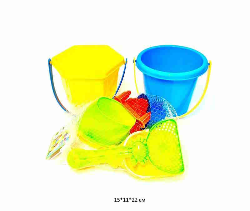 Песочный набор арт. 726-80A Ведерко с лейкой и аксессуарами в сетке_