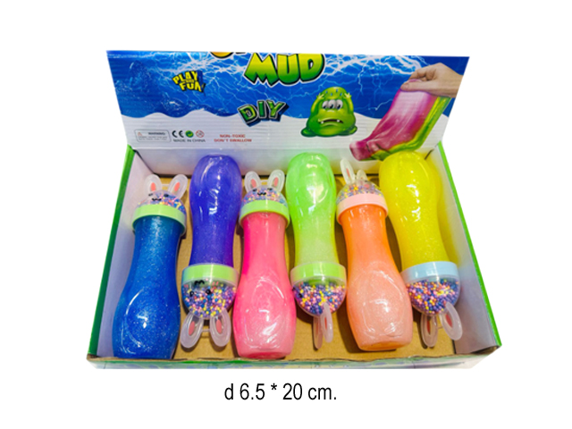Лизун арт. 82584-16 Зайка с шариками колба блестки цвета микс (6 шт.) шоубокс•