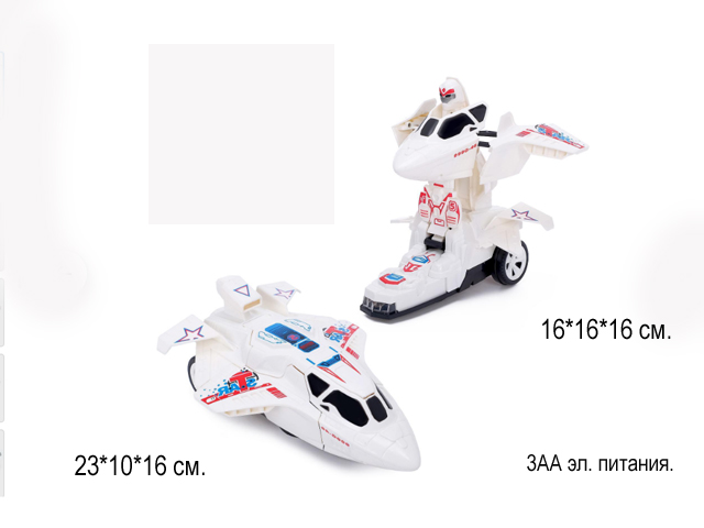 Интересная игрушка в виде самолета, которая по нажатию кнопки превращается в робота, сопровождая трансформацию звуковыми и световыми эффектами. Катается и разворачивается на 360 градусов.