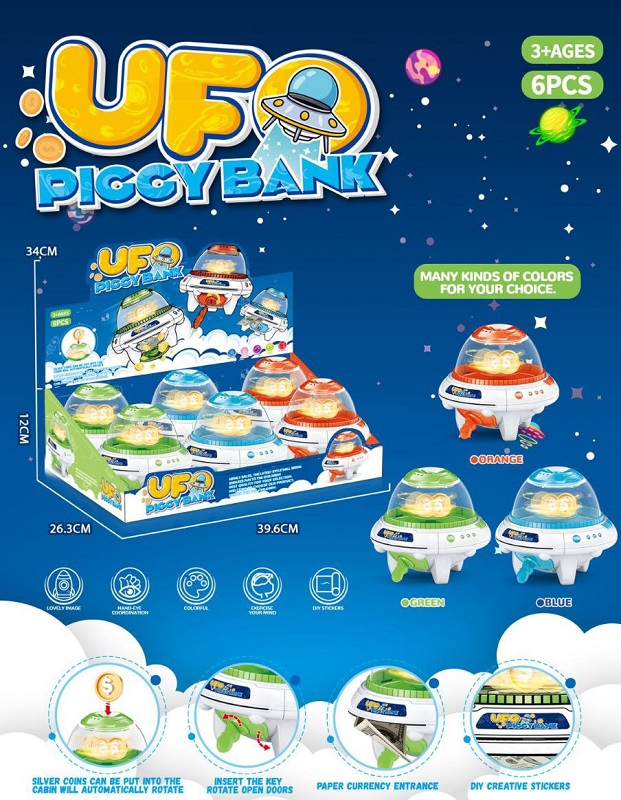 Сейф арт. 80007-80008 Копилка "НЛО" цвета микс (6 шт.) в кор.)