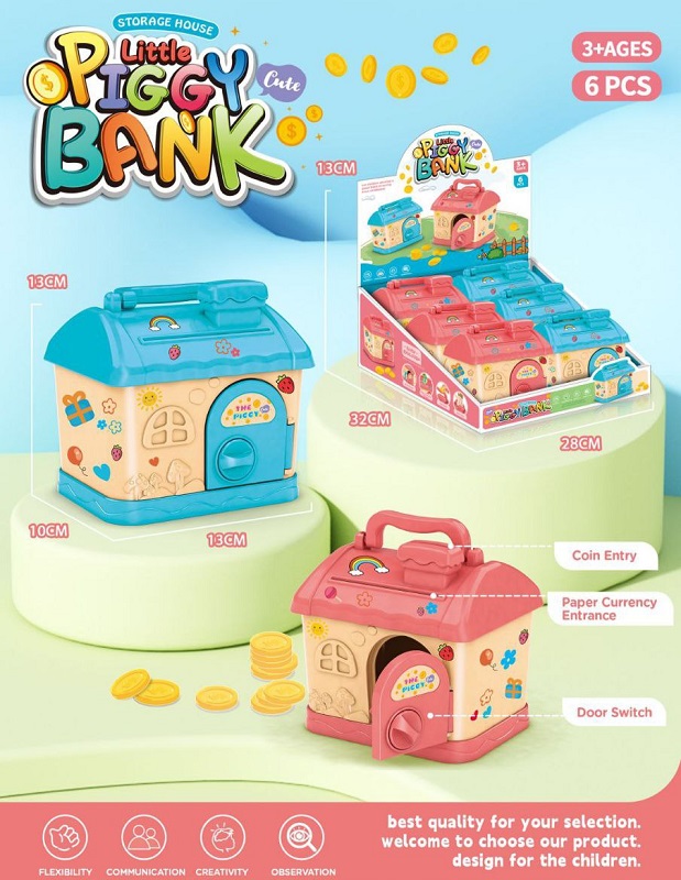 Сейф арт. 80003 Копилка "Дом" цвета микс (6 шт.) в кор.)
