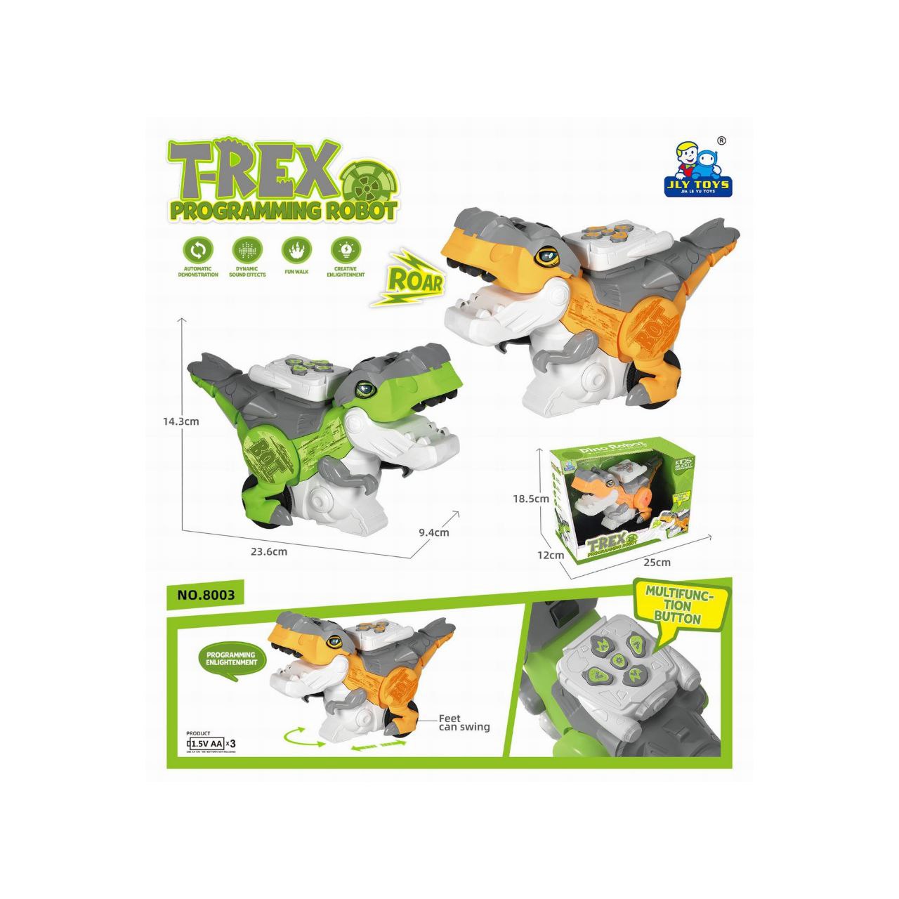 Робот арт. 8003 Программируемый Дино T-REX на бат. звук, свет в кор. 23,5*12*18,5