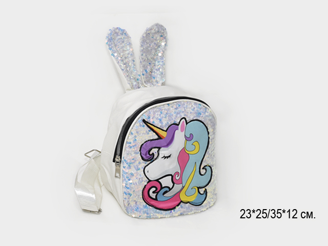 Рюкзак арт. 948-MD-1 Пайетки "Единорог голова" с ушками в пак._