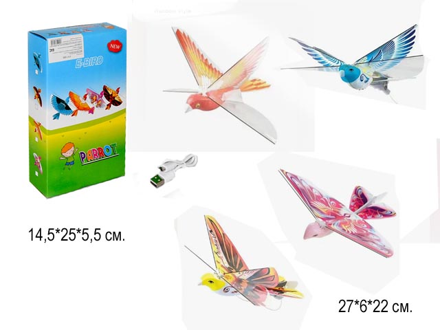 Аэроплан в виде птицы с электромотором - метательный планер с моторчиком, без пульта управления. Аккумулятор заряжается с помощью мини USB – шнура от компьютера или при помощи зарядного устройства. Запускается одним броском руки.