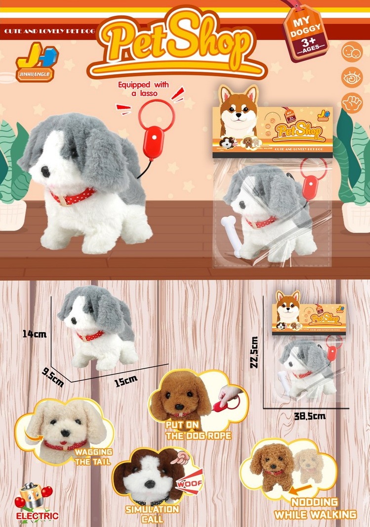 им Собака арт. 810-25" Серо-белая на батар. в коробке 15,5*11*16У питомца мягкая и красивая шерстка. Щенок ходит, гавкает, виляет хвостиком и поворачивает голову. Игрушка включается при нажатии на кнопку на поводке.