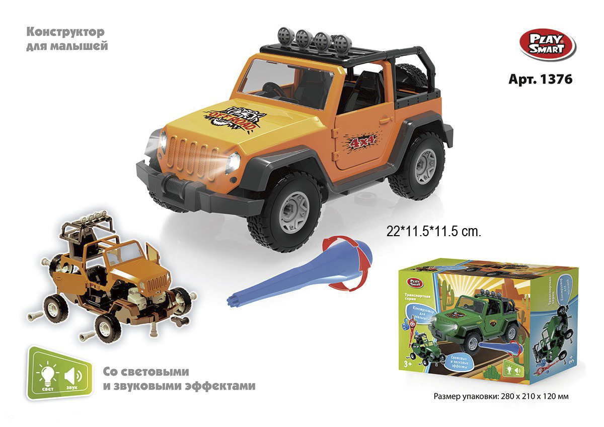 В увлекательном процессе игры ребенок научится пользоваться инструментом. Яркий и необычный Джип станет любимой игрушкой малыша, ведь она будет собрана им собственноручно.