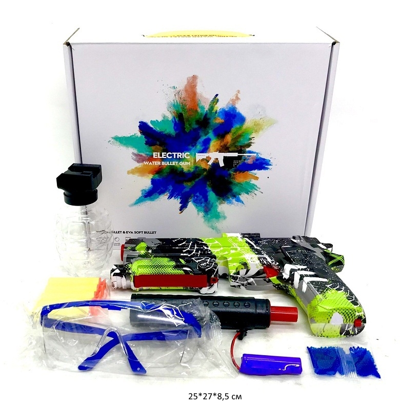 Каждый мальчик мечтает о таком оружии. Пистолет автомат с орбиз пулями перед игрой необходимо собрать. Автоматический режим производится в действие за счет аккумулятора. Режимы стрельбы контролируются курком, оружие стреляет шарами орбиз диаметром 7-8 мм, а так же мягкими пулями с присосками. Удобно держать оружие как для прицельной стрельбы, так и для стрельбы от "бедра".
